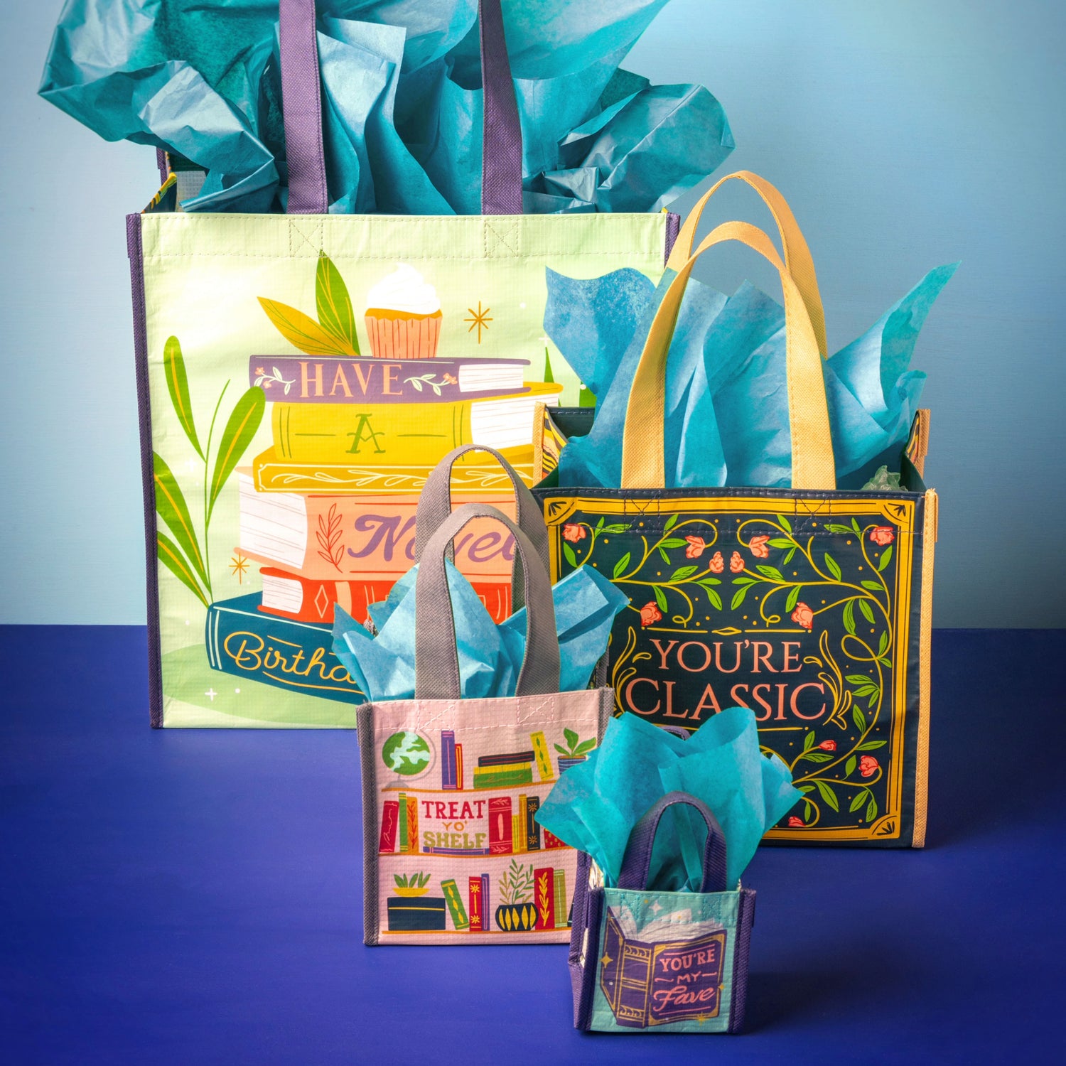 Eco-friendly gift bags with inspirational messages to promote sustainable gift giving.