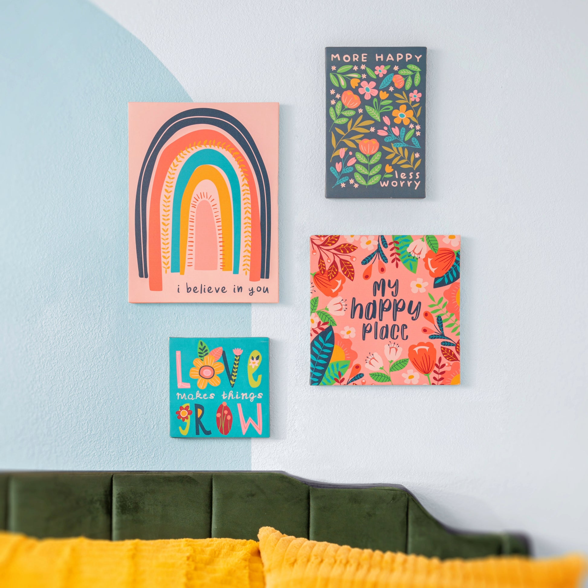 Transform any wall into an art gallery with this cheerful canvas wall art--complete with chic designs that exude effortless style! Canvas Wall Art collection. Boldly adorned with hand drawn artwork that is as captivating as it is inspirational, these whimsical pieces are sure to make a statement and spark some joy.